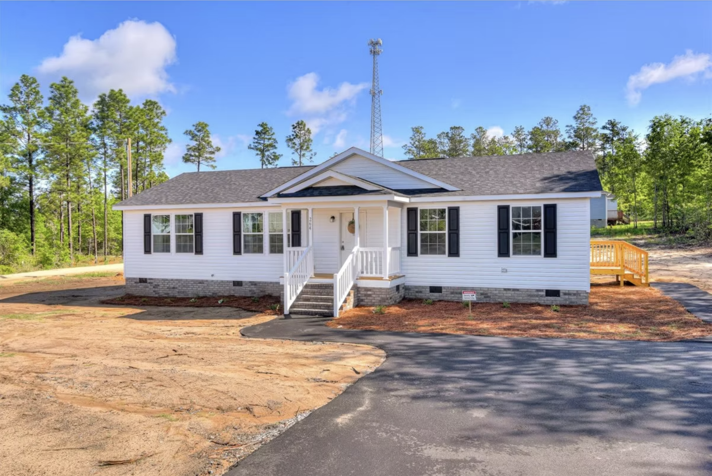 This modular home features a custom kitchen with a large island, walk-in pantry, and open dining and living areas designed for comfort and flow. The split floor plan offers added privacy with a spacious master suite that includes dual sinks, a garden tub, and a walk-in closet.