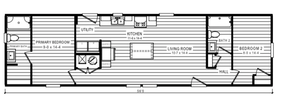 This cozy, Clayton built, cottage has drywall throughout with center island, refrigerator, stove and 2 full baths.